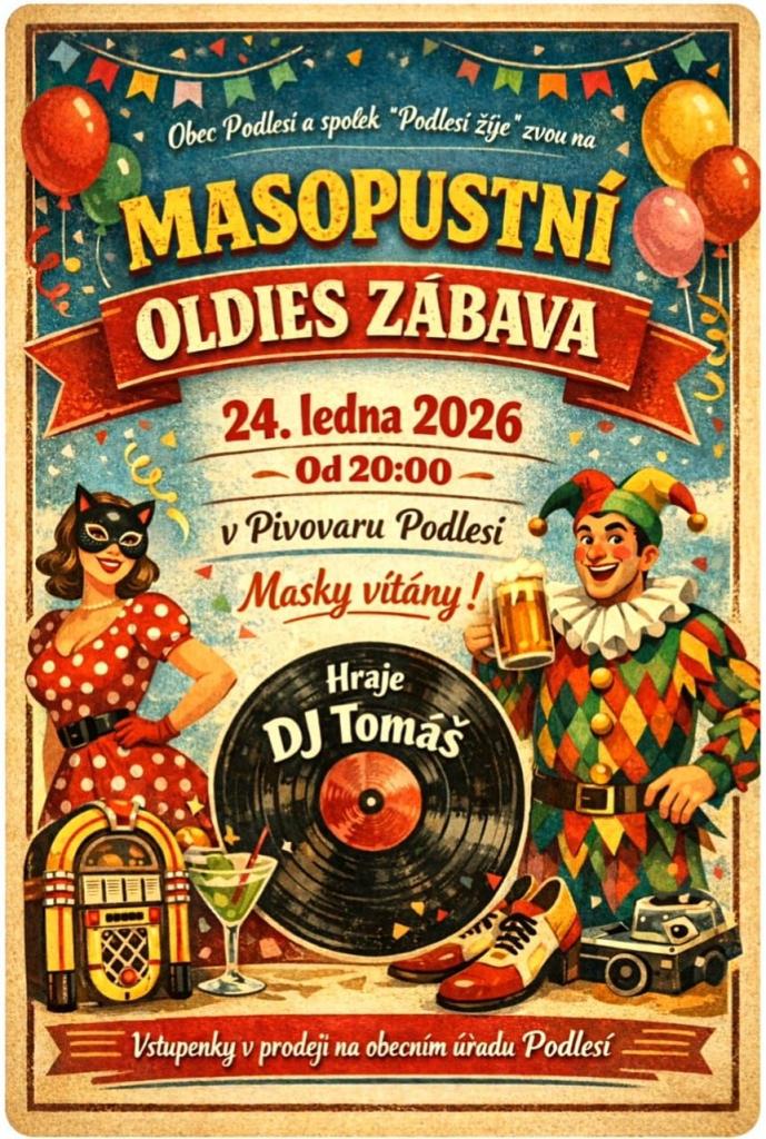 Neváhejte a zajistěte si vstupenku včas – těšíme se na vás při oslavě Masopustu v rytmu oldies!
