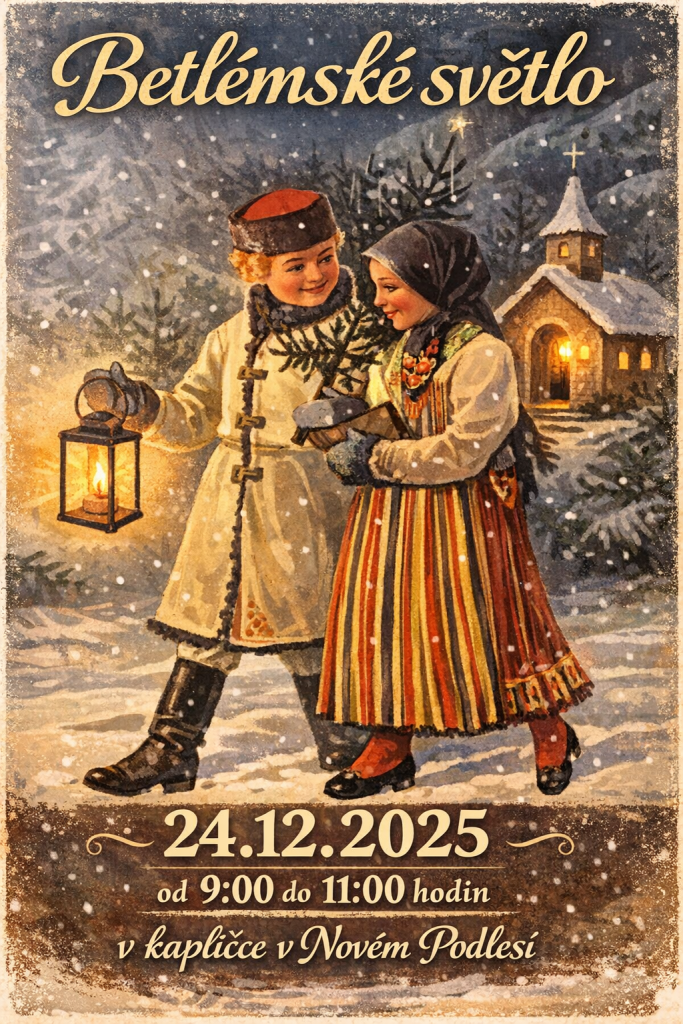 i letos je do kapličky v Novém Podlesí dovezeno betlémské světlo, které bude k dispozici 24.12.2025 od 9:00 do 11:00 hodin.