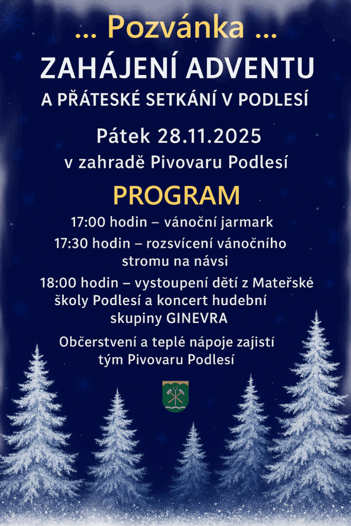 dovoluji si Vás pozvat na zahájení adventu dne 28.11.2025. Všichni jste srdečně zváni.